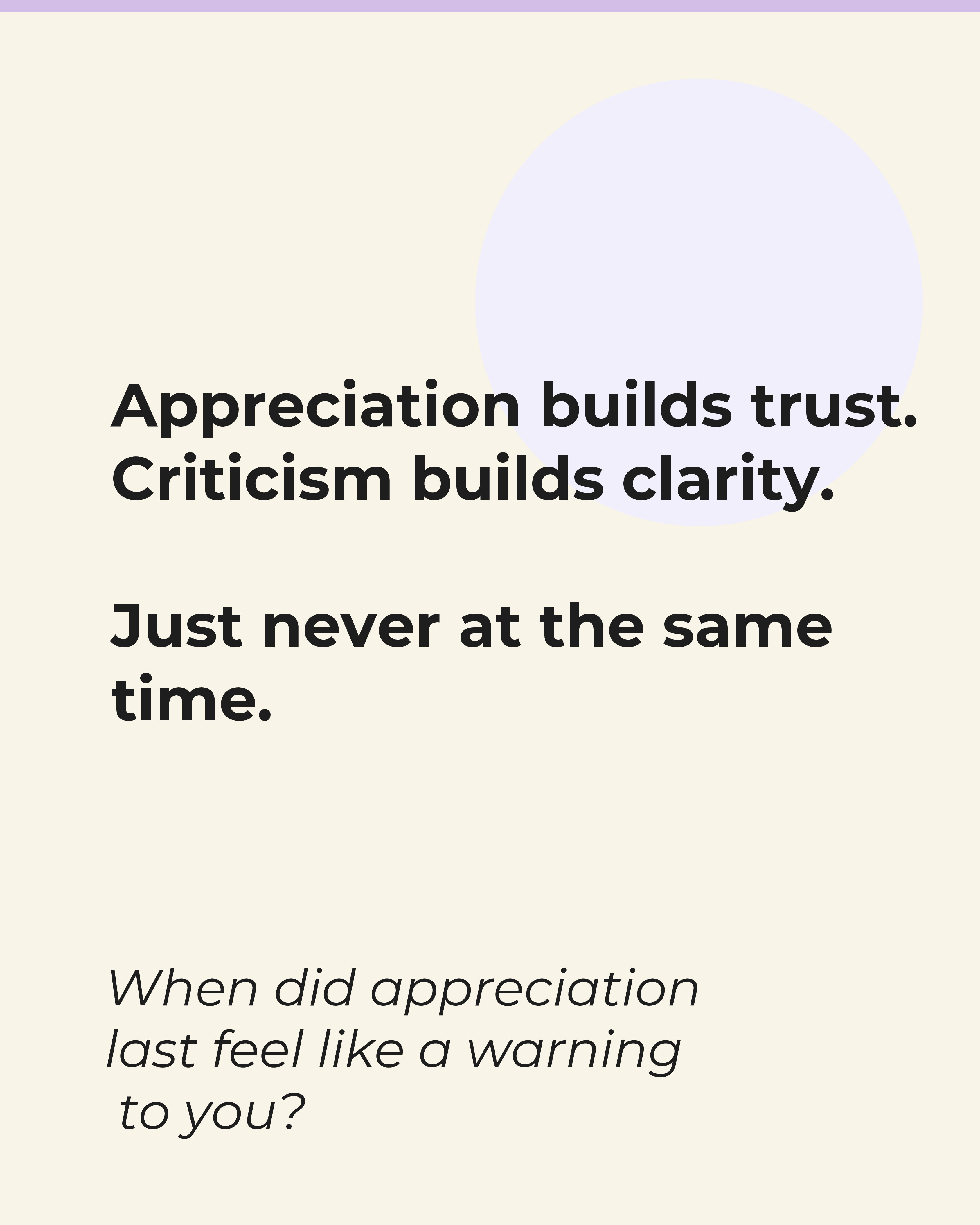 When appreciation is used as a soft entry into criticism, trust erodes.